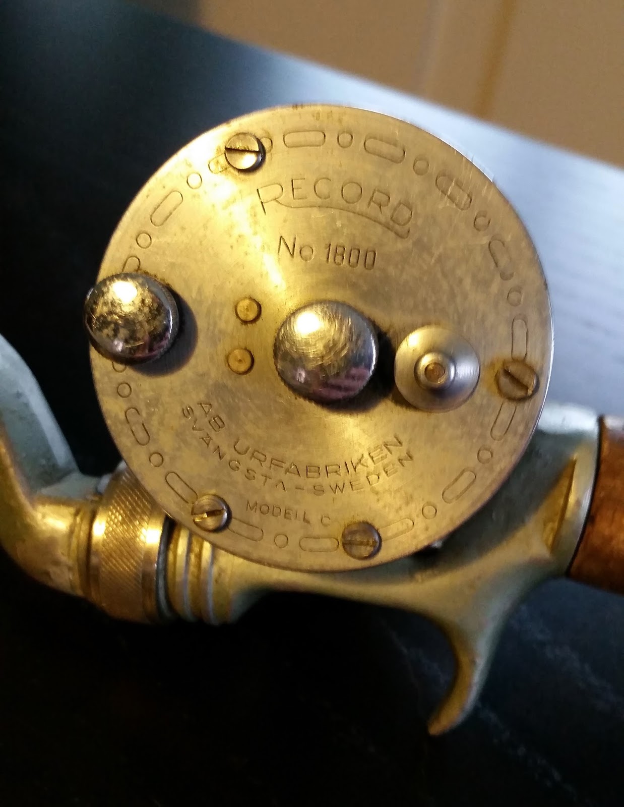 På spöt sitter en gammal ABU-rulle, record modell 1800c.
